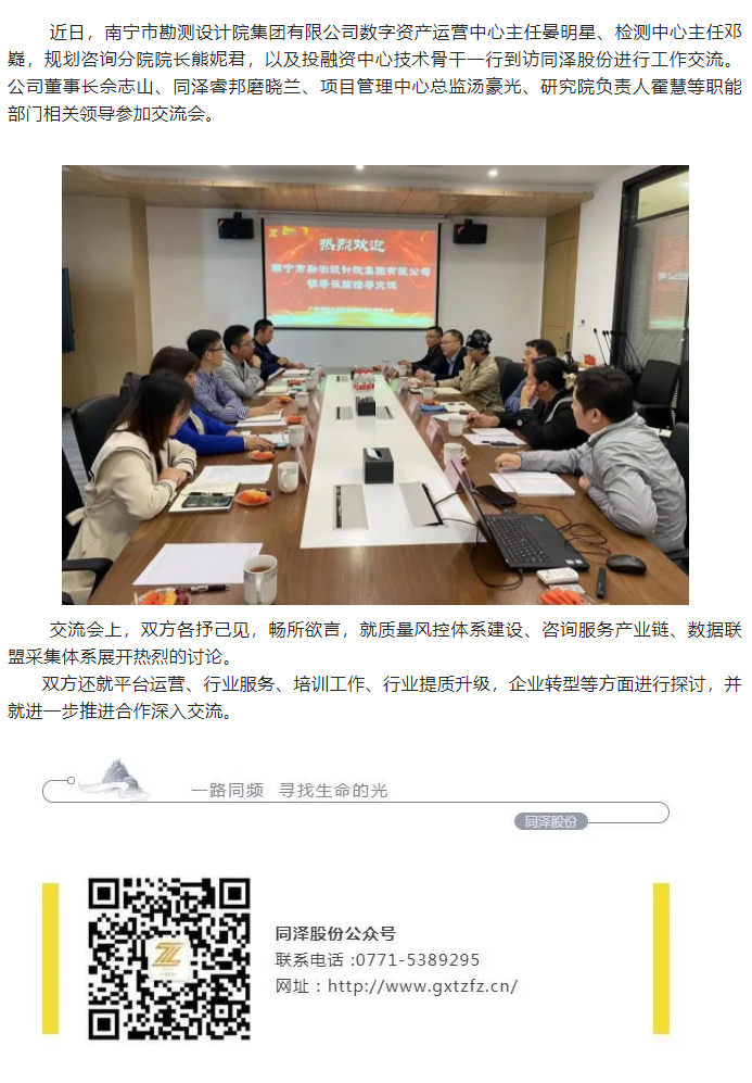 合作交流 | 南寧市勘測設計院集團有限公司到訪同澤股份交流